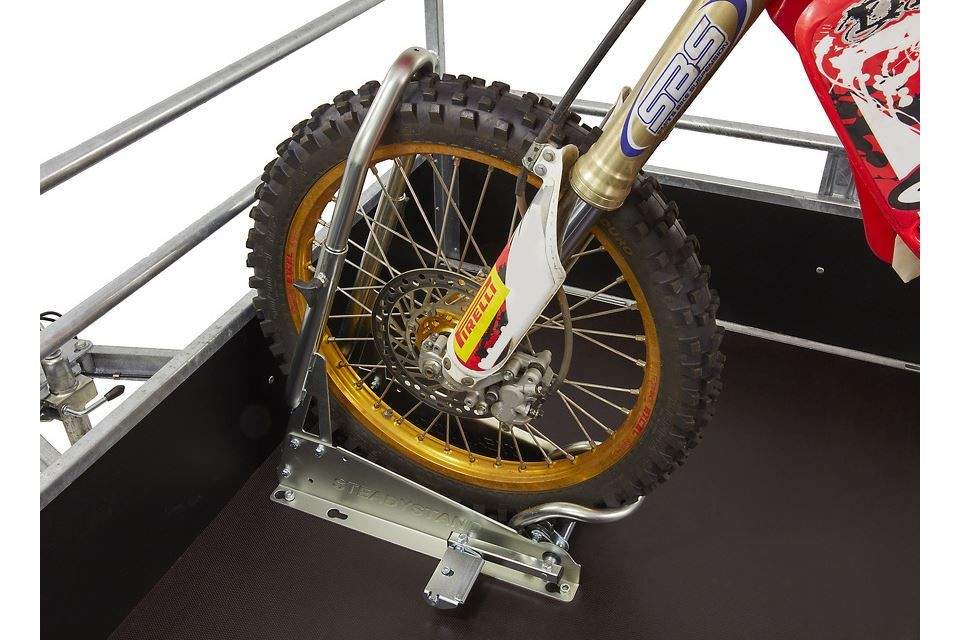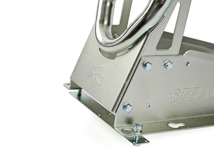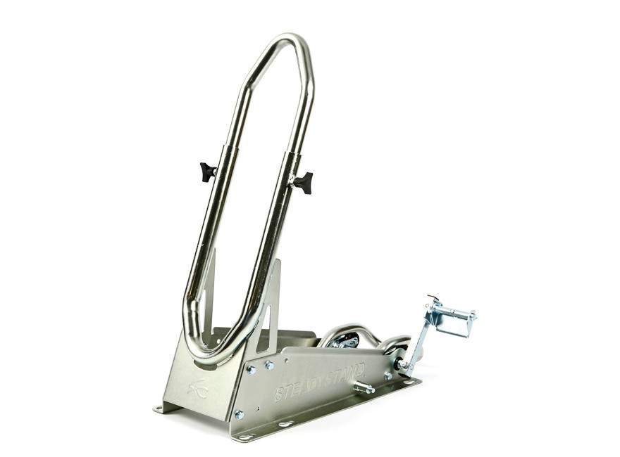 SteadyStand Cross má chytré upínací zařízení, které zabrání pohybu nebo naklonění motorky. Pomocí nožního pedálu lze přední kolo snadno připevnit k stojanu. Speciální pedál lze nainstalovat na obě strany křížku SteadyStand. SteadyStand Cross je vhodný pro kola o velikosti 18 až 21 palců a velikosti pneumatik od 90 do 120 mm.