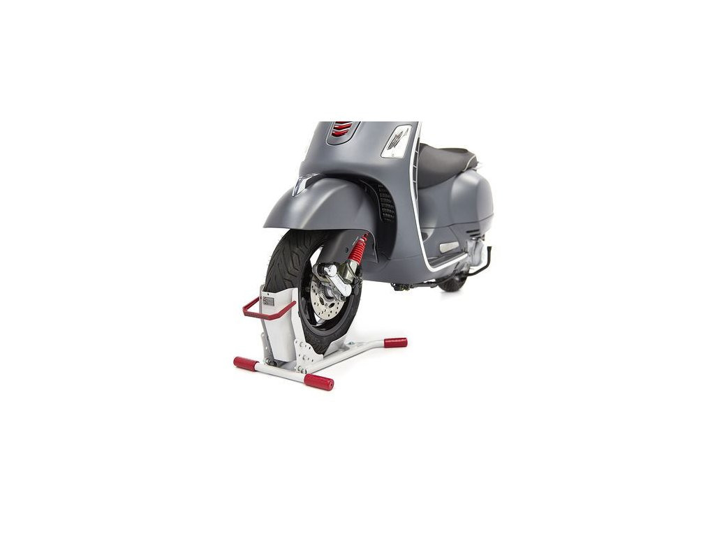 ACEBIKES SteadyStand skútr stavitelné transportní zařízení - držák předního kola 10"-13" palců. Kvalitní ocelový stojan slouží k uchycení a stabilizaci předního kola skútru při převozu, nebo parkování v garáži. Pro přední pneu šiře od 80-120mm. Velmi jednoduché uchycení Vašeho skútru. Speciálně konstruované pro skútry.