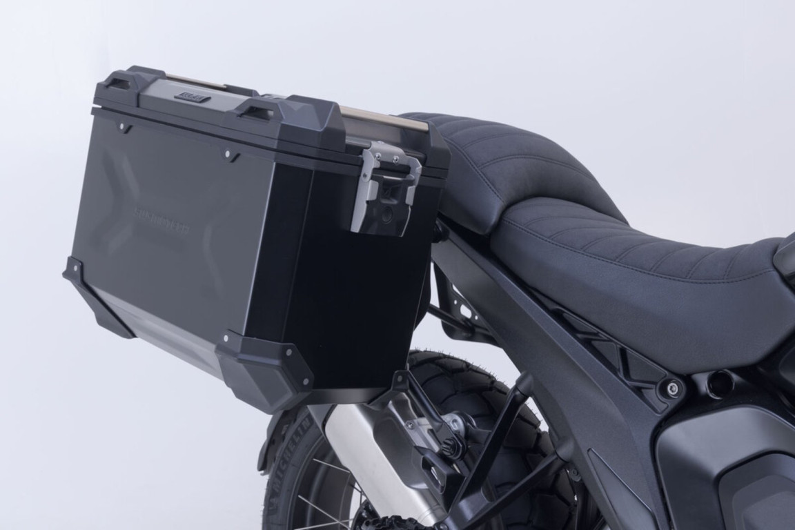 Dobrodružná sada TRAX ADV pro BMW R 1300 GS obsahuje boční nosiče PRO a odpovídající ADVENTURE-RACK. Boční nosič a nosič jsou připevněny k upevňovacím bodům specifickým pro kolo a nabízejí pevnou oporu pro černá hliníková pouzdra TRAX ADV.