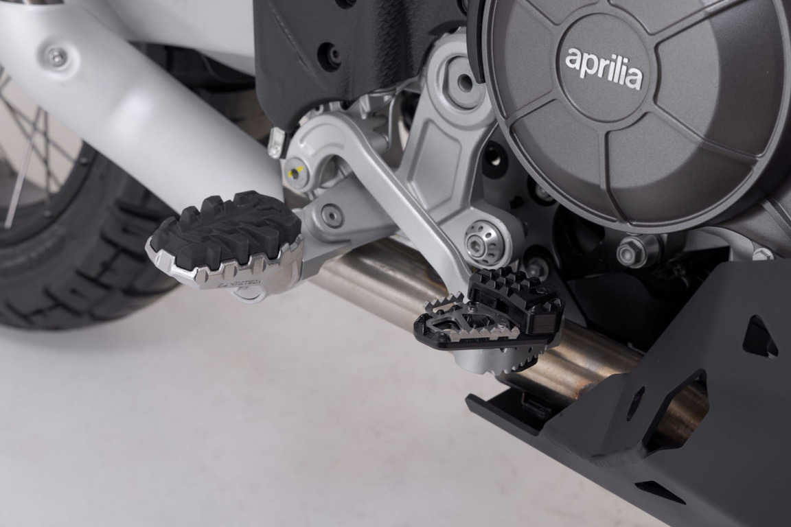 SW-MOTECH vyrábí tyto nástavce z vysoce pevné frézované hliníkové slitiny; mají černý eloxovaný povrch a nášlapnou desku z nerezové oceli. Pro optimální ergonomické nastavení lze zvýšení kroku brzdového pedálu nastavit ve dvou stupních po 22 nebo 27 milimetrech.