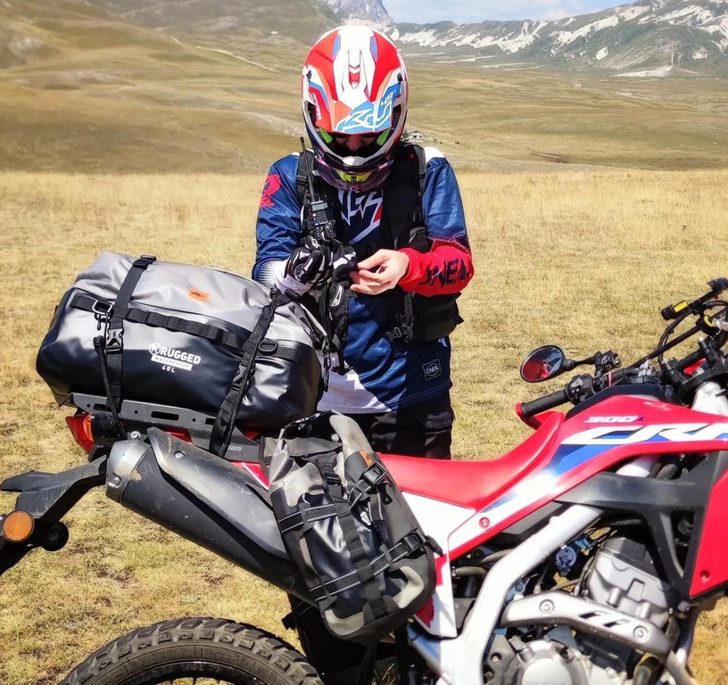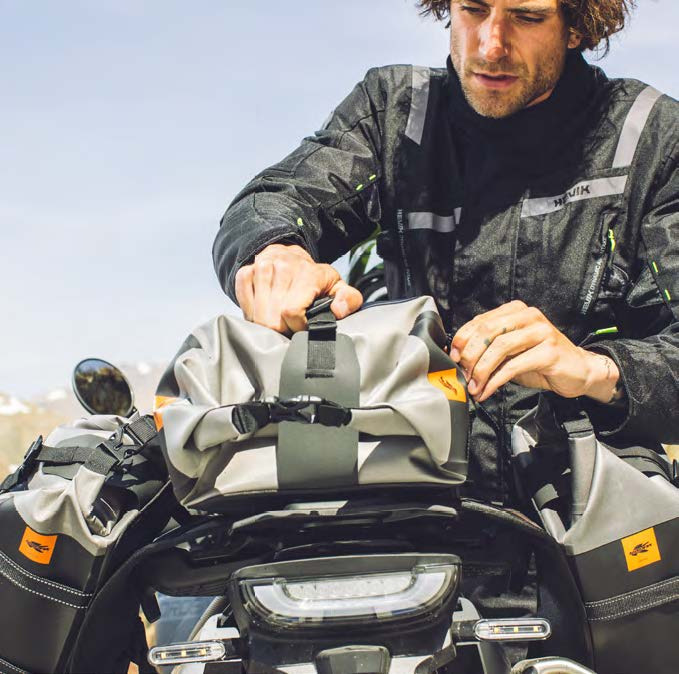 Nastavitelné ramenní popruhy, kterými je vybaven, umožňují nošení v ruce nebo použití jako prostorný batoh, jakmile opustíte sedlo motocyklu.