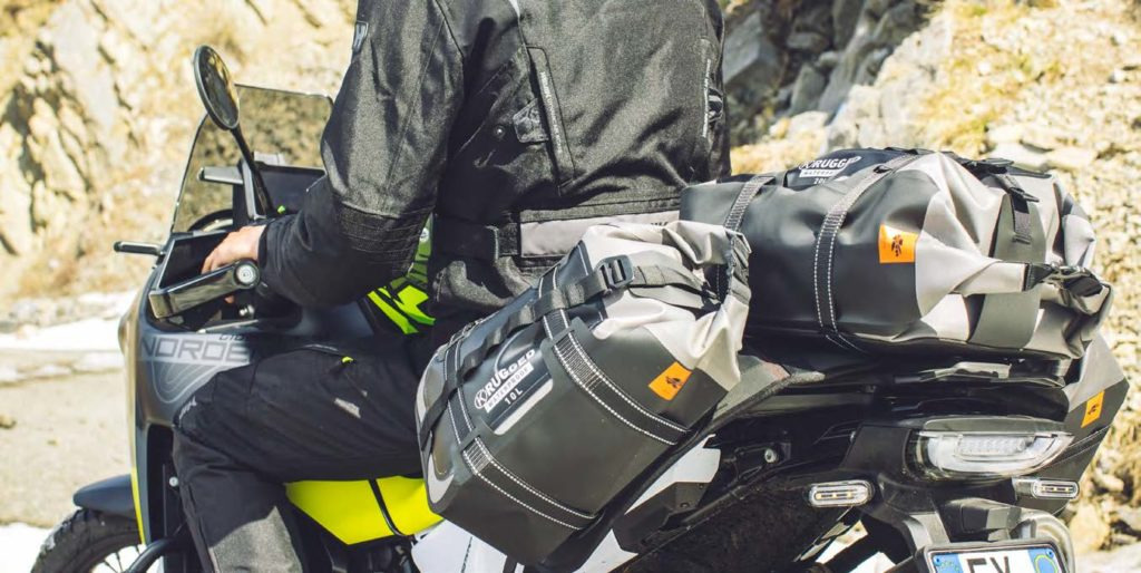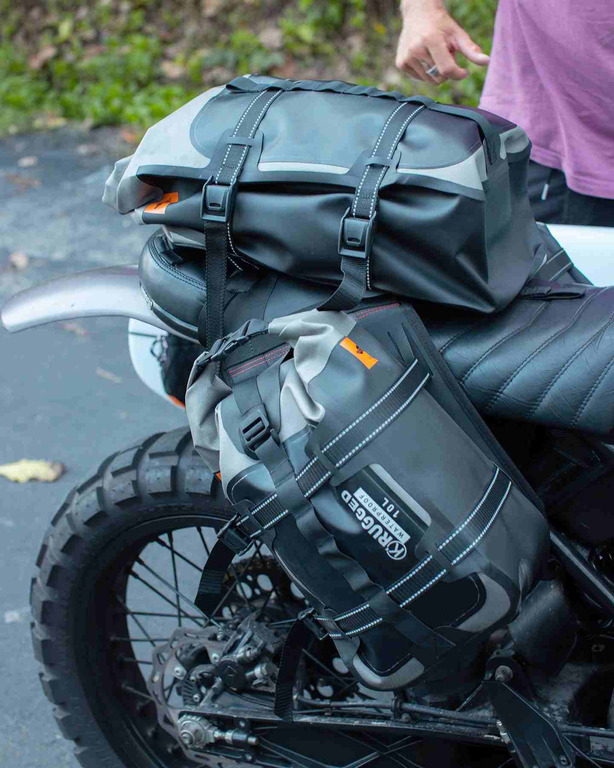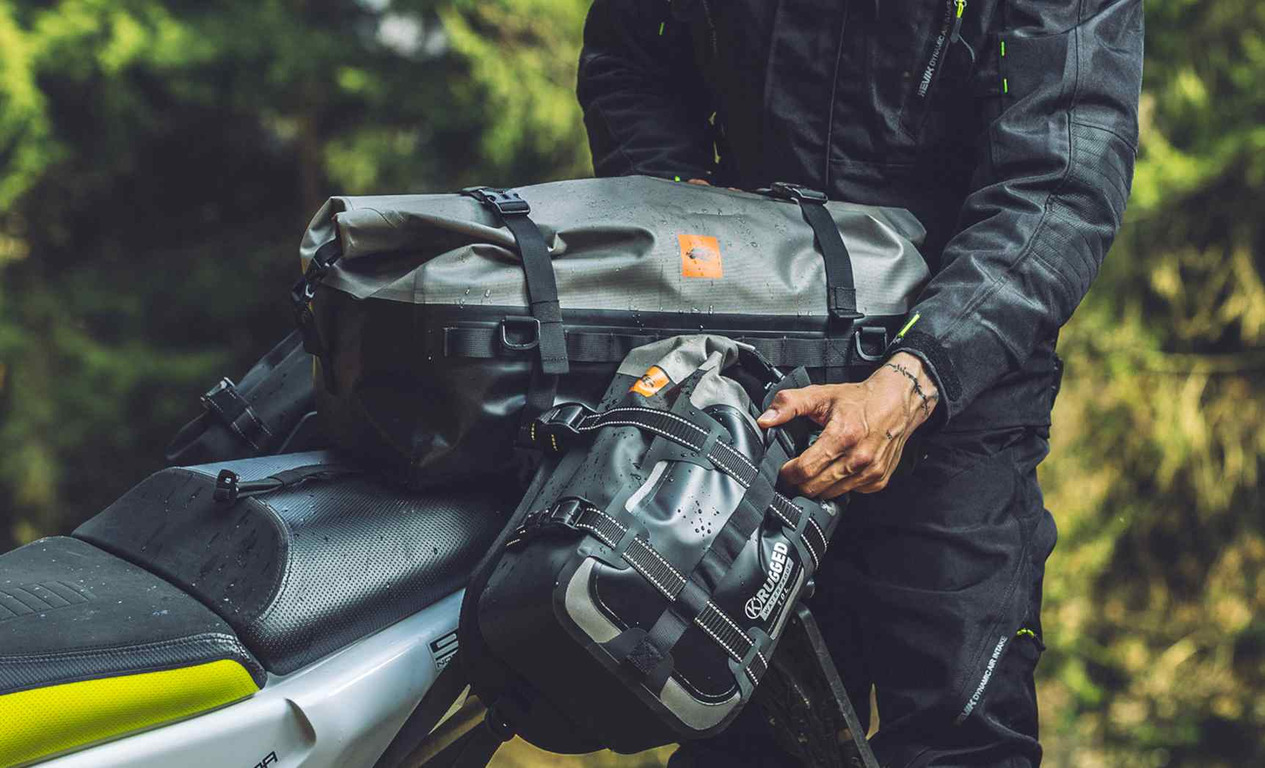 Tato taška s horním otevíráním má kapacitu 40 litrů, kromě sdílení technických specifikací s ostatními výrobky RUGGED - včetně materiálu a rolovacího uzávěru - přidává velmi užitečnou funkci při cestování na motocyklu: transformovatelnost.