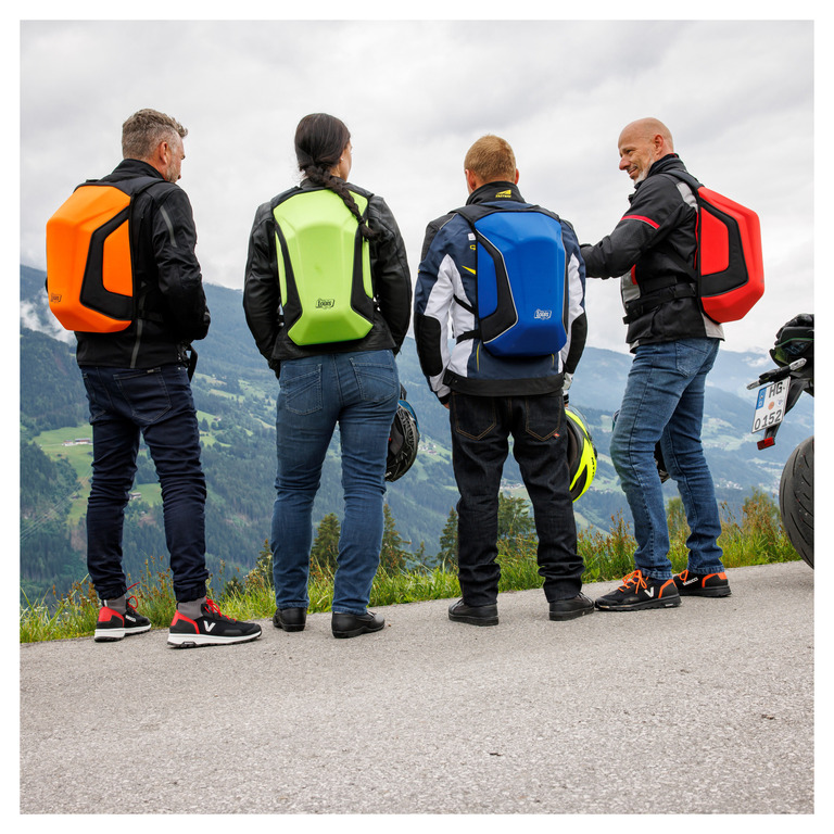 Co může být praktičtějšího než takový pevný a pohodlný batoh, který toho hodně unese a jehož aerodynamický tvar dobře funguje ve vyšších rychlostech na motorce? Tvrdý skořepinový batoh Louis se skládá z odolného, speciálně tvarovaného a vyztuženého textilního materiálu. Díky tomuto a dobrému čalounění je pěkný, lehký a pohodlný.