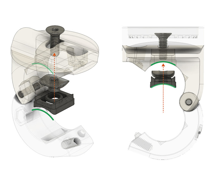 Tato nová konstrukce držáku na zrcátka je jednodušší a lehčí v porovnání s původním designem a používá výklopnou svorku podobně jako nový držák na tyč. Kloubová svorka a jednodílná distanční konstrukce zjednodušuje montáž. Hlavní upínací šroub je skrytý pod vložkou držáku, což vytváří čistší a štíhlejší vzhled. Větší a delší závity šroubů, které pomáhají zabránit uvolnění držáků a zaoblení šroubů. K dispozici je silikonová část, která drží novou posuvnou pojistnou matici na místě během demontáže. Snadnější nastavení s více možnými polohami. Držák je určen k montáži na zpětná zrcátka s kruhovým profilem a přiložené distanční podložky umožňují montáž na nejběžnější průměry. Lze jej také namontovat na úzké tyče příslušenství, které se běžně vyskytují na adventure a enduro motocyklech.