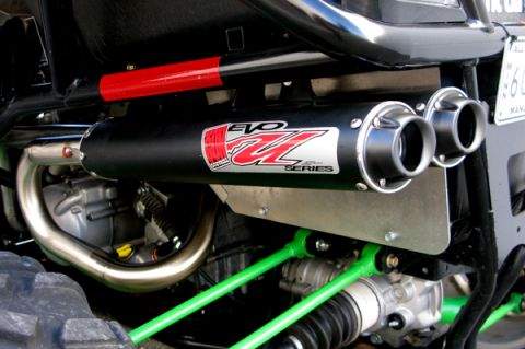 Kompletní dvojitý výfukový systém EVO Utility Series zvyšuje výkon a točivý moment v celém rozsahu otáček. Svody z kvalitní nerezové oceli. Perforované jádro. Koncovky jsou z hliníku s povrchovou úpravou práškovým lakováním. Celý systém je oproti sériovým výfukům výrazně lehčí, je navržen pro závodní použití a bez obtíží vydrží i dlouhodobou extrémní zátěž. Výfuky s vyjímatelnými lapači jisker nabízejí špičkový výkon a zároveň nízkou hladinu hluku 94-96 dB. Pro dosažení optimálního výkonu po celé výkonové křivce doporučujeme zakoupit také programovatelnou řídící jednotku Big Gun Power Box.