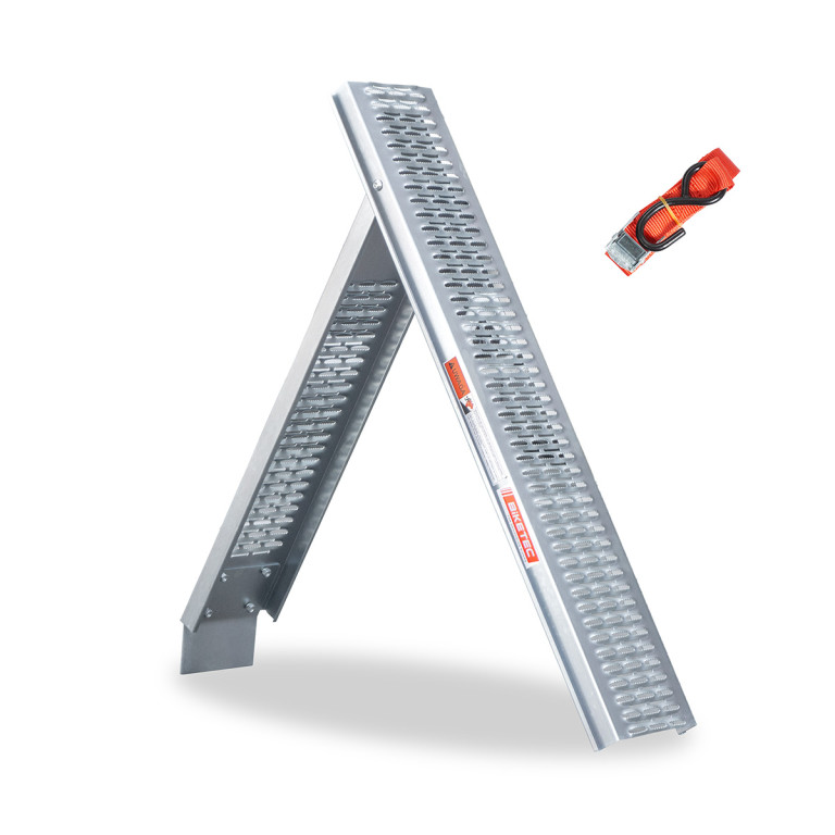 Skládací ocelová rampa Biketec BTRAMP4 je robustní a spolehlivá konstrukce, která usnadňuje nakládání a vykládání vozidel, strojů a dalšího vybavení. Její perforovaný povrch poskytuje vynikající trakci a minimalizuje riziko uklouznutí i za obtížných povětrnostních podmínek. Skládací konstrukce rampy činí kompaktní a snadno se skladuje a přepravuje.