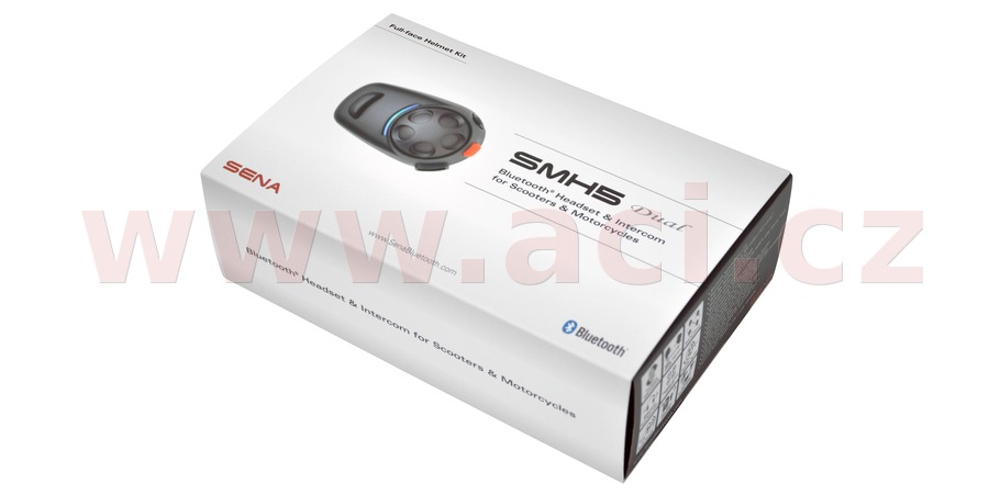 - Rozměry a hmotnosti: 70 mm x 45 mm x 31 mm, 40 g (headset) / 50 mm x 39 mm x 22 mm, 37 g (držák na přilbu)