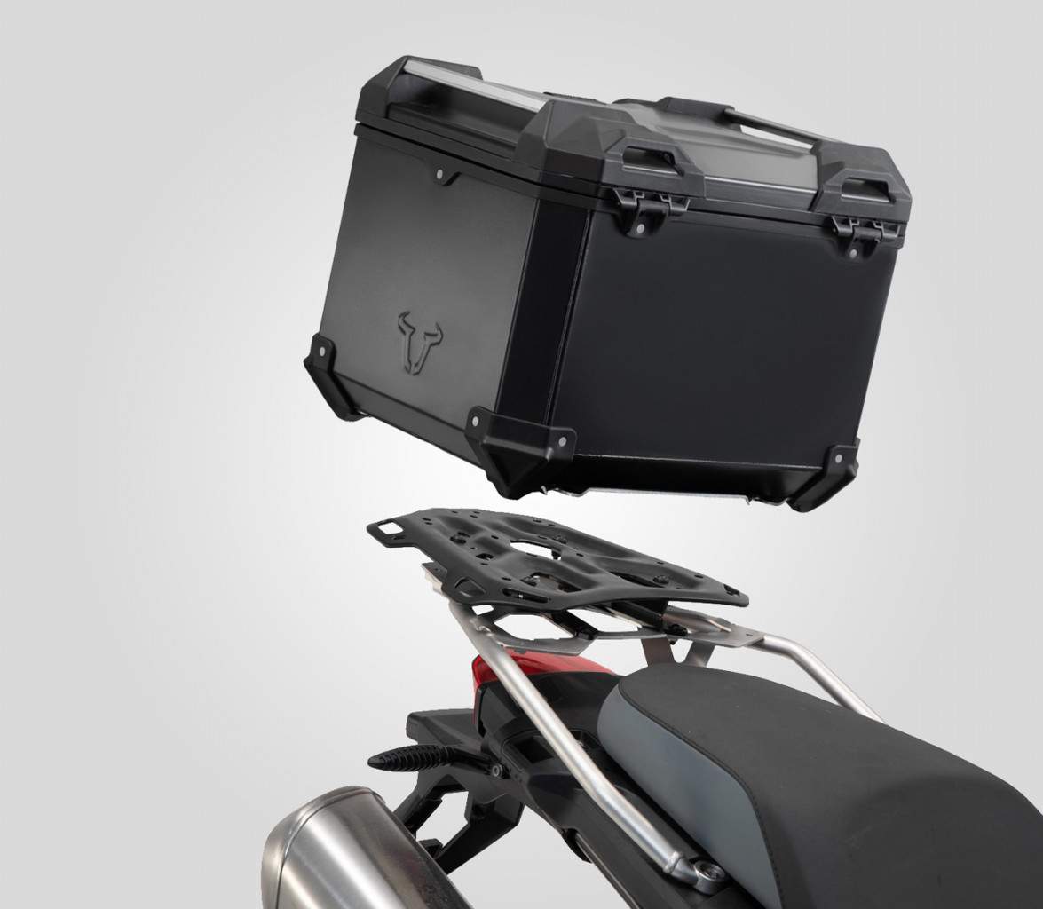 BMW F 750/850 GS (18-) - Sada horního nosiče s kufrem TRAX Adventure, SW-Motech Černý kufr, nerez orig. nosič