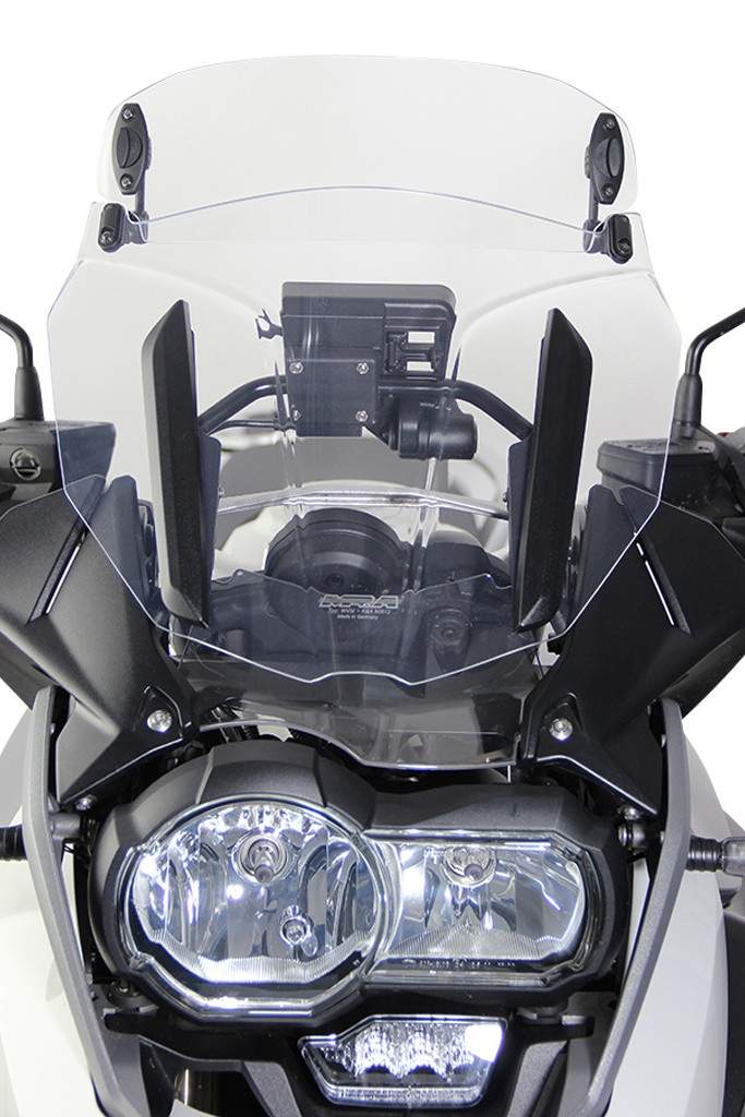 Všichni testovací jezdci našli ideální nastavení plexi, které odpovídalo jejich požadavkům v rozsáhlé sérii zkušebních jízd v širokém spektru podmínek. I přes svůj jednoduchý vzhled zajišťuje Multi-X-Creen mimořádně pohodlný zážitek z jízdy s proudem vzduchu, který vede vítr od helmy a horní části těla a prakticky eliminuje turbulence. Velmi velká turistická plexi mohou vypadat nepatřičně, zejména na velkých cestovních endurech, takže kompaktní design Multi-X-Creen byl optimalizován speciálně pro tento typ motocyklů.