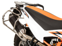 Náš nosič bočních kufrů Cutout pro kufry Xplorer Cutout 40/37 je optimálním doplňkem vašeho KTM 890 Adventure / R / Rally (2023-). Tento nosič na kufry, navržený speciálně pro dobrodružství, nabízí odolnost vůči živlům a pevné šroubové spojení pro spolehlivou podporu. Nosič je vyroben z nerezové oceli a splňuje vysoké nároky na dobrodružné jízdy. Jeho povrch je tryskán a elektrolyticky leštěn, což zajišťuje nejen atraktivní vzhled, ale také zvyšuje jeho odolnost. Součástí dodávky jsou nosiče pro levou a pravou stranu, potřebný montážní materiál a návod, který vám pomůže s montáží. Upozorňujeme, že k tomuto nosiči lze připojit pouze pouzdra Xplorer 40 Cutout a 37 Cutout. Normální pouzdra Xplorer a další pouzdra Hepco & Becker nesedí. S tímto nosičem bočních kufrů Cutout jste dobře vybaveni, abyste si užili své dobrodružné cesty s dostatkem úložného prostoru.