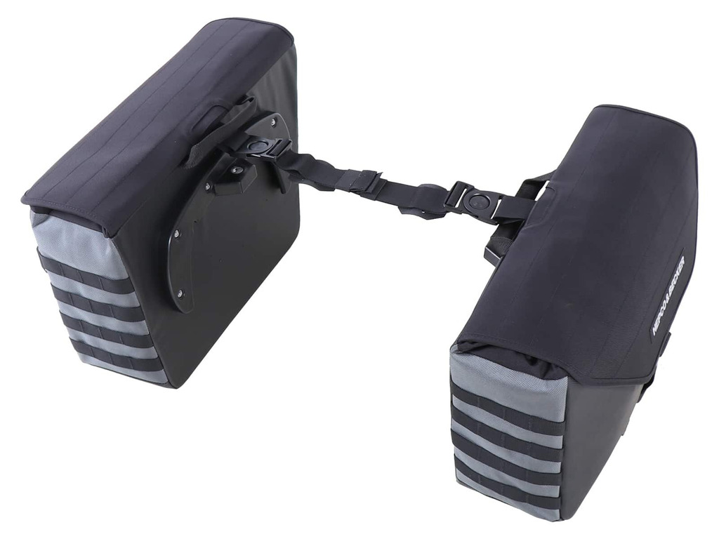 Tenký a diskrétní boční držák Hepco&Becker C-Bow je nosičem brašen Xtravel C-Bow. Jednoduše jej připevníte a uzamknete, abyste jej ochránili před krádeží. Díky svému objemu balení je tato taška ideální pro krátké víkendové výlety a jednodenní výlety. Díky voděodpudivému vnějšímu materiálu a absolutně voděodolné vnitřní vložce z polyesteru s rolovacím uzávěrem zůstává obsah suchý i při jízdě v dešti. Zadní stěna z otěruvzdorné plachty vytváří stabilitu a usnadňuje čištění. Centrální G-háček vyrobený z hliníku se snadno používá a spolehlivě zavírá. Manipulaci usnadňuje také madlo. Boční MOLLE systémy inspirované vojenskými textiliemi umožňují uchycení volitelného příslušenství. Při plném naložení lze tašky sevřít pomocí spojovacího popruhu.