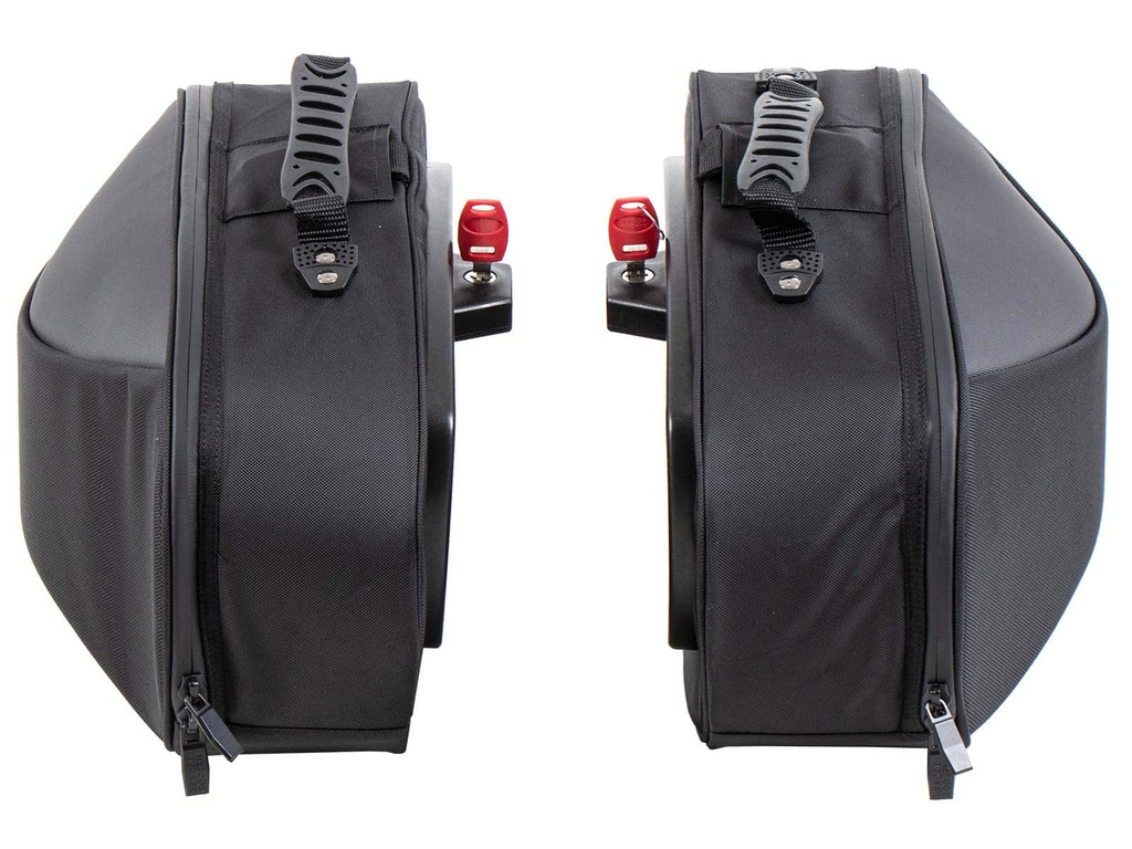 Nepromokavé, k nosičům zamykatelné, snadno snímatelné, a rozšiřovatelné textilní brašny STREET.