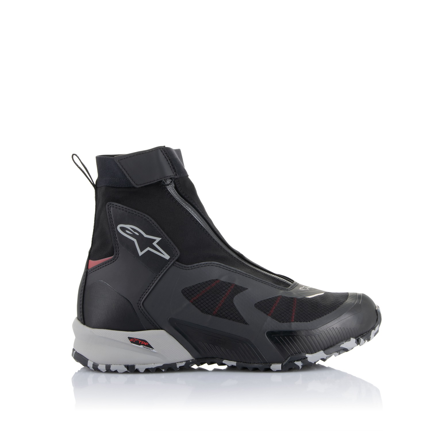 CR-8 GORE-TEX® jsou motocyklové boty určené především pro cestovní využití v různých klimatických podmínkách. CR-8 GORE-TEX® posouvají úspěšný koncept CR-X na vyšší úroveň pro pokrytí potřeb náročných cestovatelů. Zvýšená konstrukce s lehkou a oděruodolnou obšívkou disponuje voděodolnými vlastnostmi a prodyšností standardu klimatické membrány GORE-TEX®. Vnější obšívka je tvořena z lehkého, strečového materiálu se zapínáním pomocí dlouhého voděodolného zipu v kombinaci s vrchní manžetou na suchý zip. Vnitřní výstelka disponuje dodatečnou vnitřní vložkou s donastavením fixace nohy pomocí pružné tkaničky se zdrhovadlem. Unikátní konstrukce celoplošné vyztužující vložky podrážky z TPU plastu, kombinované s pružným můstkem systému konstrukce podrážky TPF zajišťuje maximální ochranu chodidla během jízdy na motocyklu a flexibilitu podrážky při běžné chůzi. Bota disponuje vnitřní anatomickou vložkou OrthoLite® pro vysoký komfort chodidla a prodyšnost.