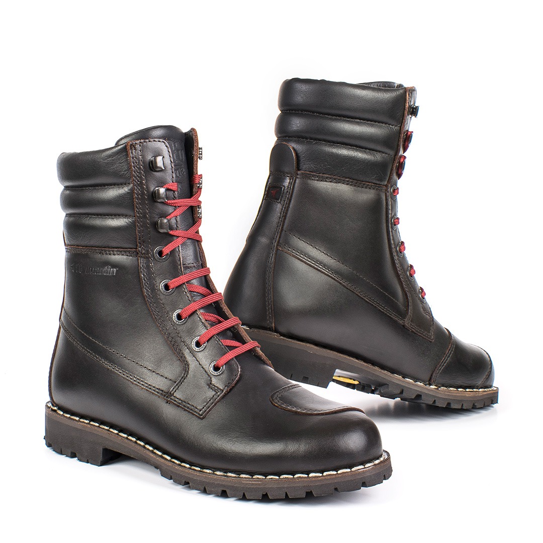 Stylové boty YU'ROK Vás nadchnou klasickým designem, který pochází z rukou italských návrhářů. Jde o nesmírně komfortní obuv, která Vás nezklame na motorce i mimo ni. Jemné polstrování v horní části bot zajistí, že bota nedře do nohy a je velmi pohodlná. Boty jsou vyrobeny z prvotřídní kůže, která je šetrně barvena. Způsob barvení ovlivňuje i pozdější chování této kůže, bota bude čase získávat patinu a tím jedinečný vzhled. K obuvi jsou přiloženy dva páry tkaniček v různých barvách (červená a hnědá). Další výhodou je klimatická membrána, která Vás nezklame ani v nepříznivém počasí, ale zároveň je prodyšná a tak je bota pohodlná i v teplém počasí.