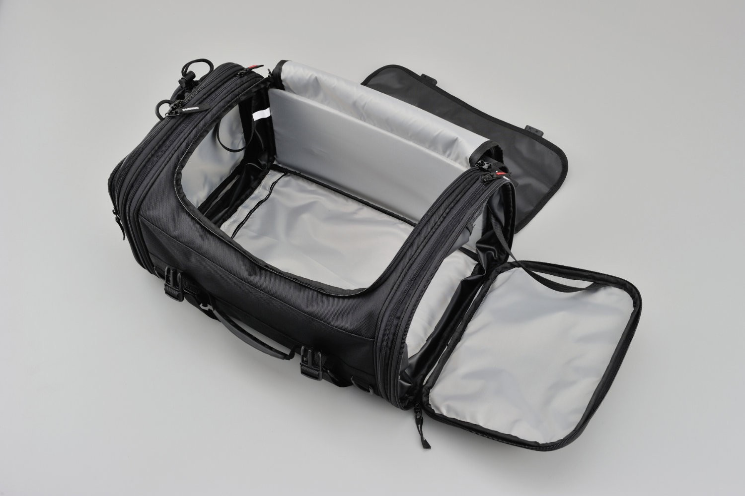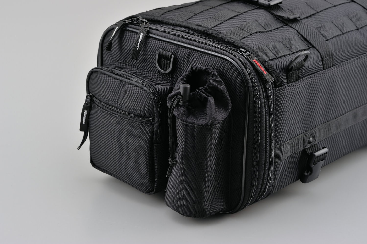 6 vnějších kapes na zip, + 2 stahovací např. na láhev.