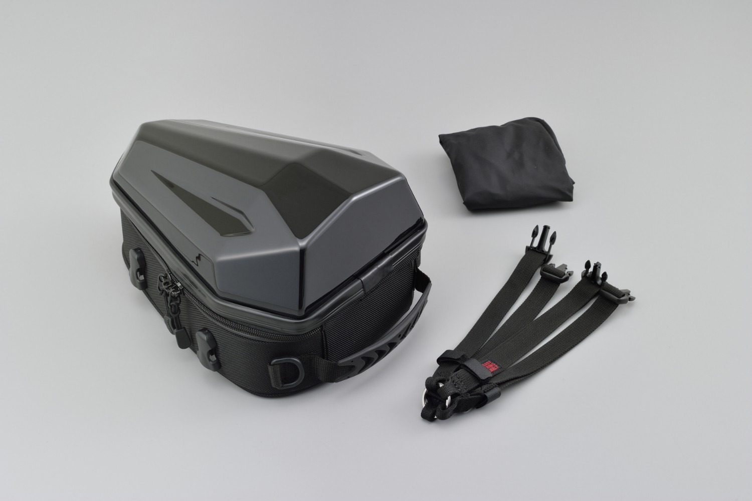 Obsah balení: brašna, potah proti dešti, kotevní popruhy.