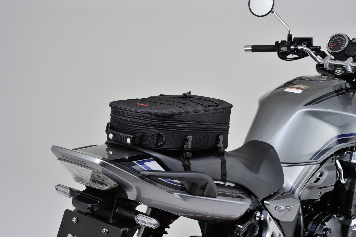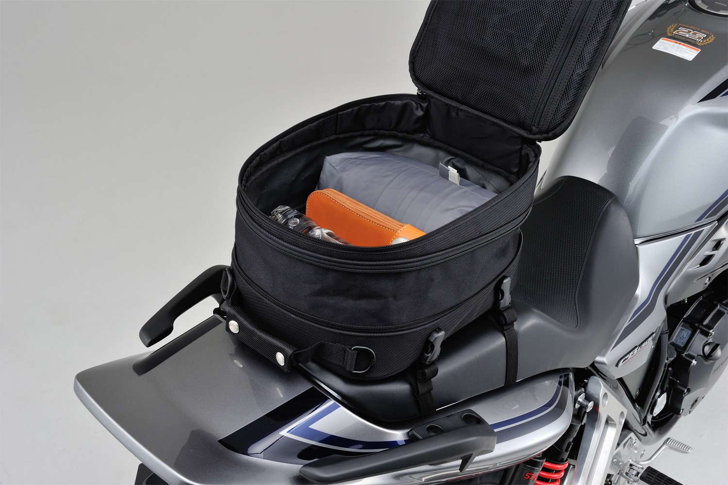 Kotvení 4 body pod sedlem motocyklu.
