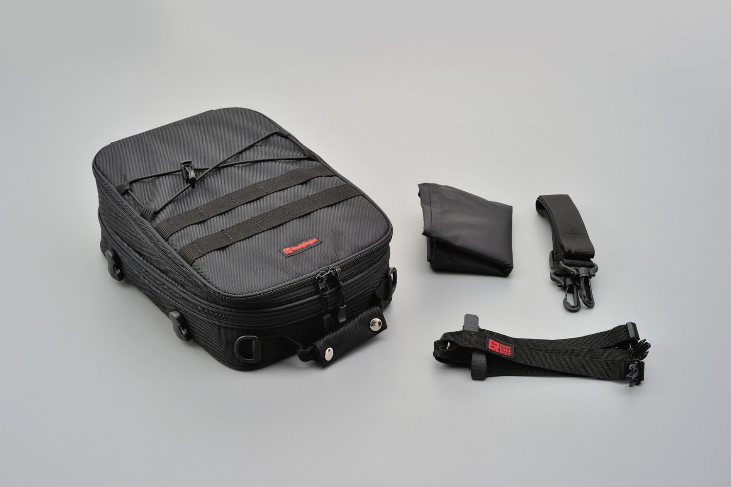 Obsah balení: brašna, potah proti dešti, kotevní popruhy.
