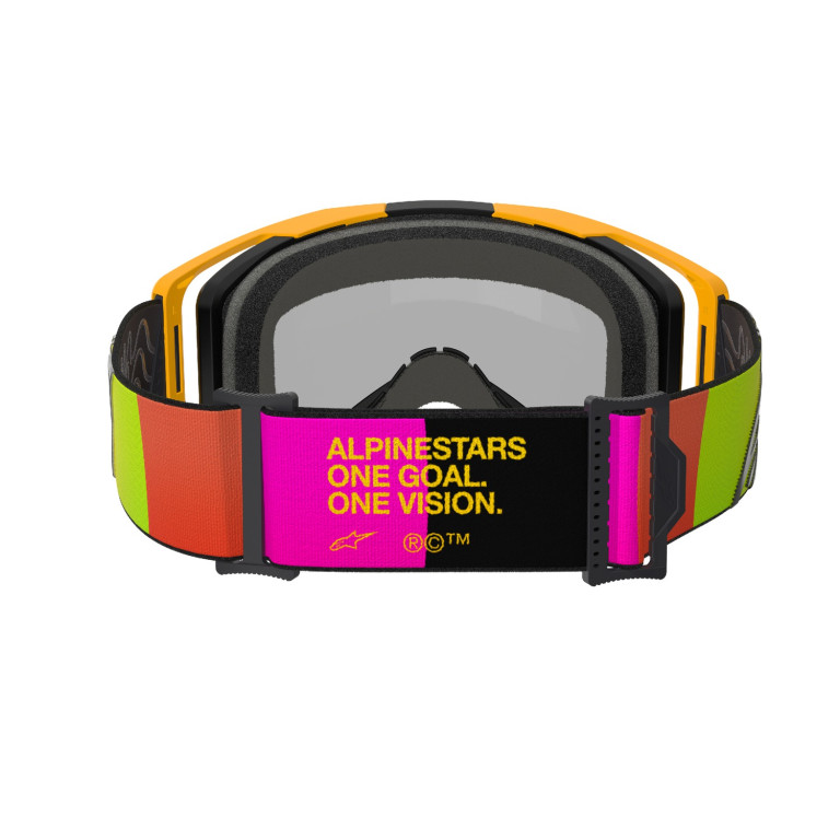 Brýle ALPINESTARS VISION 8 jsou vyvinuty a navrženy pro ideální poměr ceny a kvality produktu vyšší třídy. Asymetrická pozice pásku brýlí tloušťky 45 mm s úhlem náklonu 13° zajišťuje rovnoměrné umístění pružného, lehkého rámu na přilbě a okolo obličeje. Pokročilý systém náporové ventilace společně s prostorovou obličejovou pěnou poskytuje vysoký komfort a možnost plného soustředění na výkon na trati i v otevřeném terénu bez ohledu na podmínky.