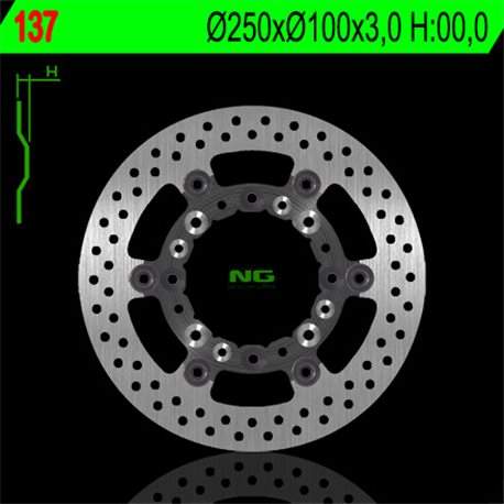 BRZDOVÝ KOTOUČ NG137, PŘEDNÍ, KX 125/250 '89-'02, KLX 250/300/650R '93-'07 (PLOVOUCÍ) (25X100X3) (4X6,5MM)