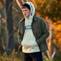 Zateplená zimní bunda s vnější obšívkou ve stylu košile.