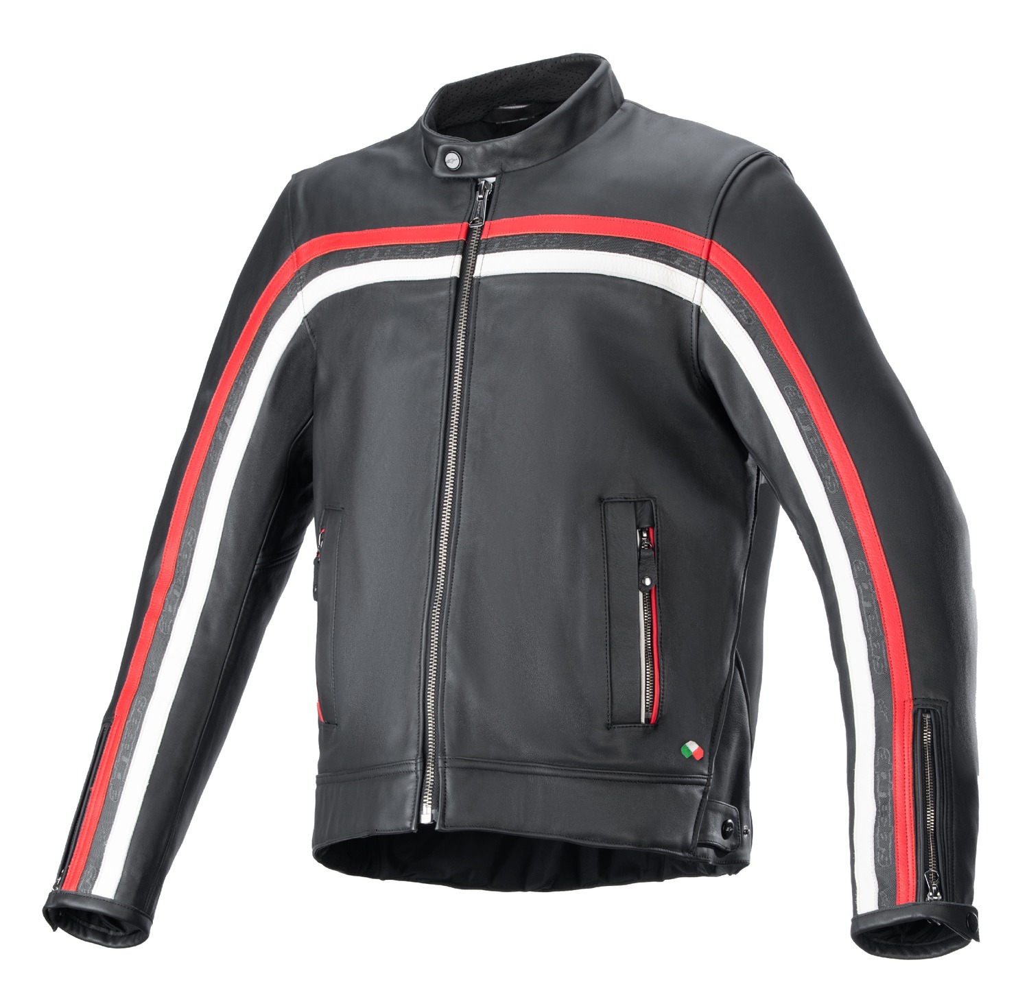 Vyšívané logo s Italskou trikolorou odkazující na historické kolekce produktů ALPINESTARS.