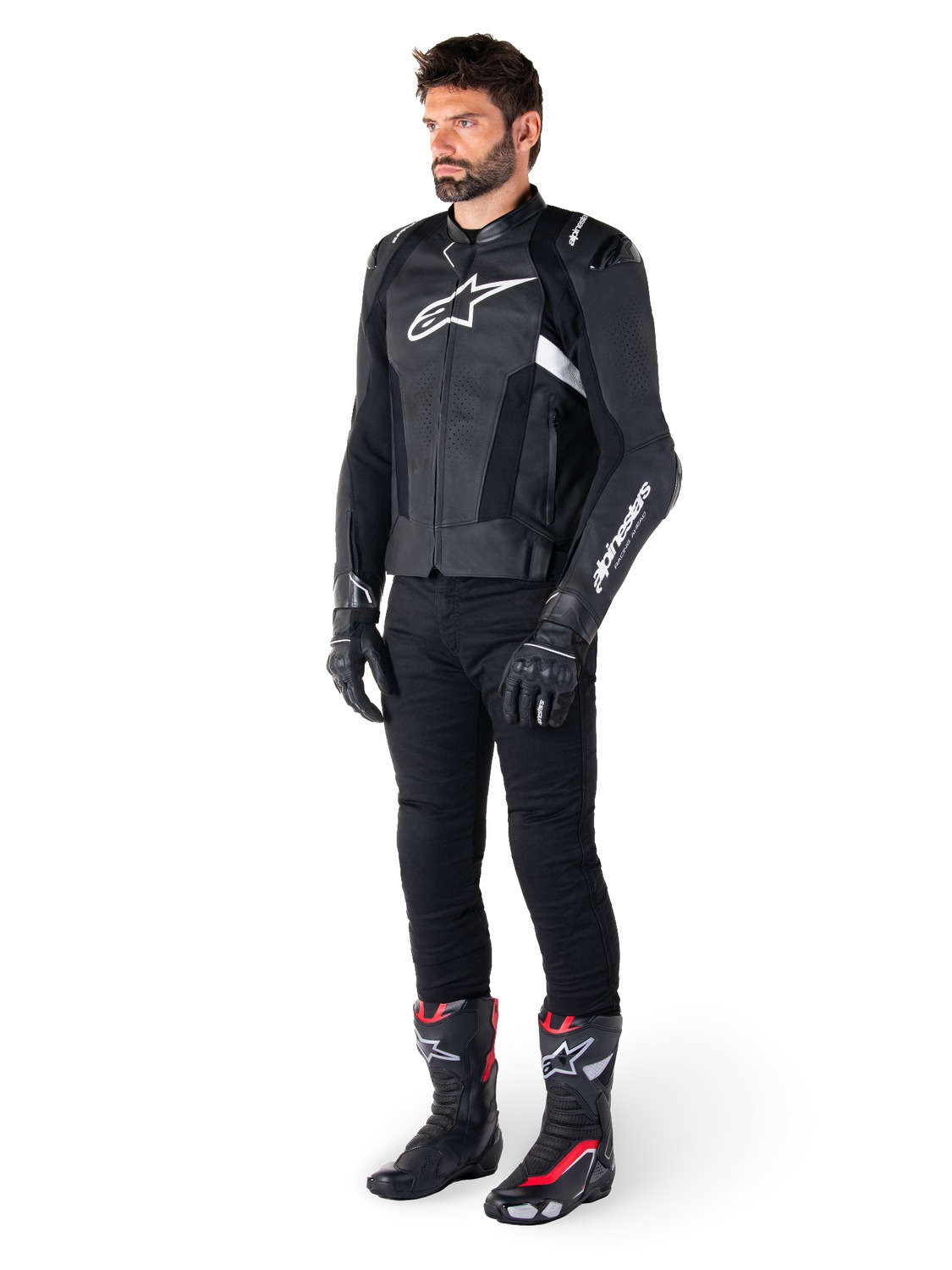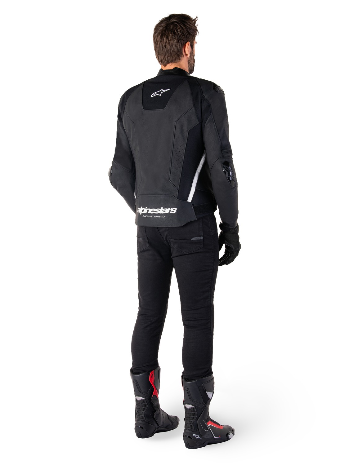 Strečové panely z textilie HRSF pro zajištění optimální odolnosti proti oděru garantují vysoký stupeň volnosti při práci s tělem v sedle sportovního motocyklu.