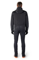 - Kapuce odnímatelné pláštěnky, a rukávy pláštěnky jsou objemově nastavitelné. Celá odnímatelná vrstva je snadno skladná do prostoru zadní kapsy