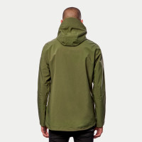 Lehká voděodolná bunda s mechanicky odolnou konstrukcí z voděodolného a prodyšného dvouvrstvého laminátu s lepenými spoji.