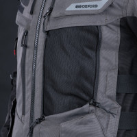 Vnější vrstva z Polyesteru 600D HD-POLY s extra oděruodolnými panely z dobby Polyesteru v úrovni ramen a loktů.