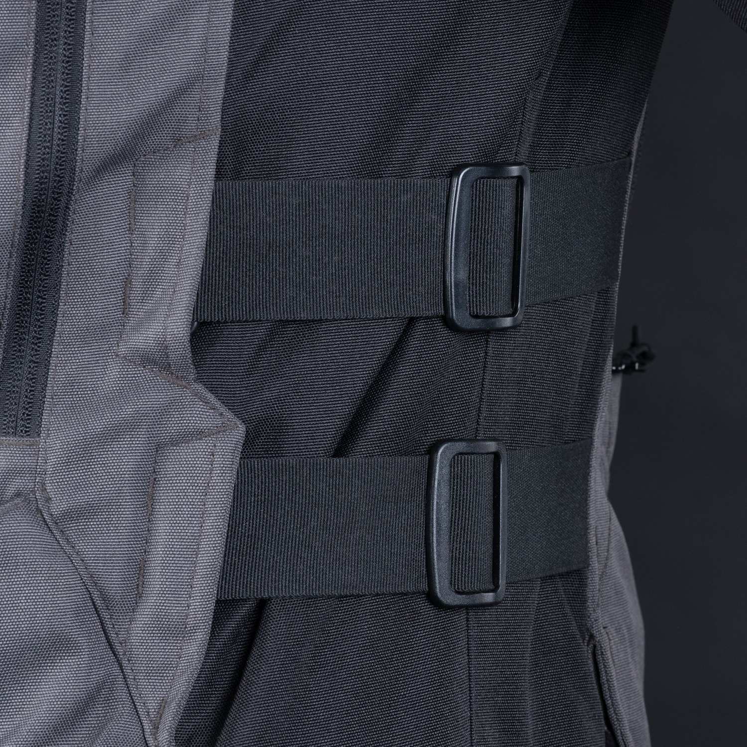 Propojení bundy a kalhot pomocí obvodového zipu YKK, díky kterému je možné propojit bundu s kalhotami ROCKLAND i některými dalšími kalhotami z nabídky značky OXFORD.