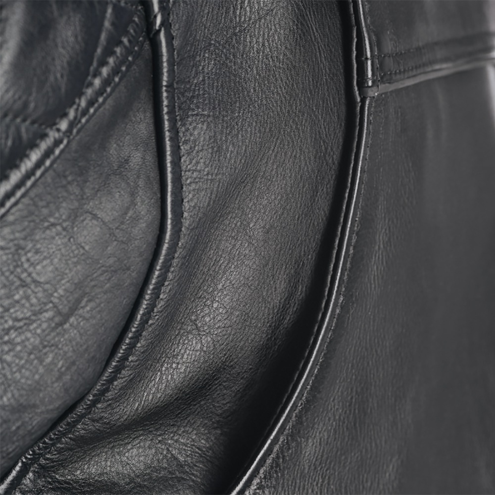 Bunda ROUTE 73 je stylová bunda klasického střihu, která je vyrobena z té nejlepší hovězí kůže a je tak zajištěna její vysoká odolnost. Klasické prošívání v ramenou je velmi elegantní a bundu si zamilujete nejen pro jízdy na motocyklu. Nenápadné reflexní prvky zaručují viditelnost bundy i v šeru, a zároveň nijak neruší design bundy. Vkusně provedené panely v oblasti zadní části ramen zajišťují vysoký komfort při pohybu a bunda tak netáhne přes záda. Bunda ROUTE 73 skvěle vypadá v kombinaci s jeansy a nejen s nimi.