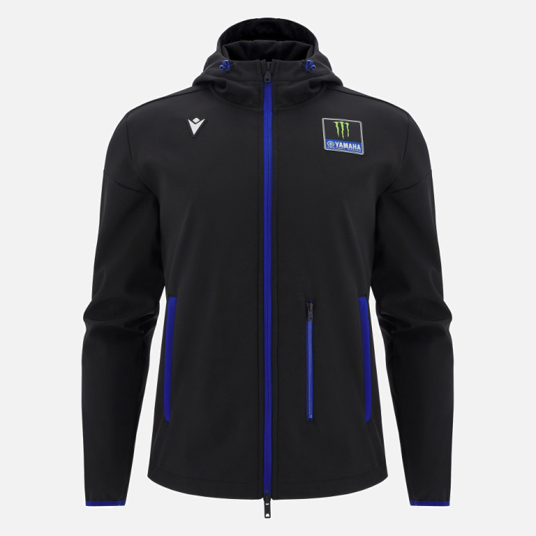 pánská bunda Yamaha Racing s logem týmu MotoGP na přední straně. Vyrobena z nepromokavé softshellové tkaniny. Má praktickou kapuci s elastickou stahovací šňůrkou a dvě boční kapsy na zip