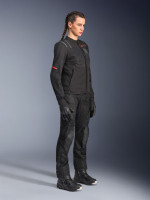 Jemný okraj límce, nastavení obvodu manžet rukávů a předloktí, prodloužená zádová část respektující ergonomii při vzpřímené jezdecké pozici a spojovací zip pro možnost spojení bundy a kalhot.
