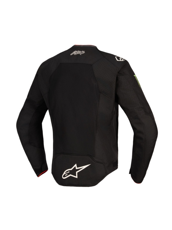 - Fixní, síťovaná výstelka pro zvýšení uživatelského komfortu obsahuje vnitřní zakladače pro možnost umístění dvoudílných protektorů hrudi a krátké nebo prodloužené vložky zadového protektoru.
