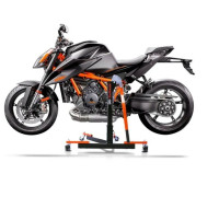 Pro vaši bezpečnost a stabilní stojan stroje jsme nainstalovali uzamykatelný mechanismus, který vám umožní nastavit si pracovní výšku a zajistit ji ručně. To vám umožní pohodlně provádět práce na vašem stroji, jako jsou opravy, údržba, výměna pneumatik a údržba. Také bylo nainstalováno šikmé rameno páky, které vám poskytuje optimální ochranu proti zachycení. Stabilní centrální stojan ConStands Power-Classic díky odlehčení částí, jako je podvozek a pneumatiky při zvednutí, je také ideální pro zimní skladování. Doporučujeme chránit váš stroj před nečistotami a prachem plachtou. Na jaře je můžete sundat a začít hned jezdit na svém čistém motocyklu.