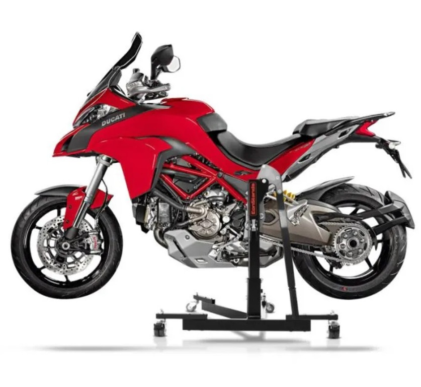 Centrální stojan/zvedák vám bude dodán včetně adaptérové desky specifické pro daný model. Pokud si v budoucnu pořídíte nový motocykl, můžete doobjednat z velkého výběru dalších adaptérů na centrální stojan pro různé značky a modely motocyklů. Takže můžete i nadále používat svůj centrální stojan.