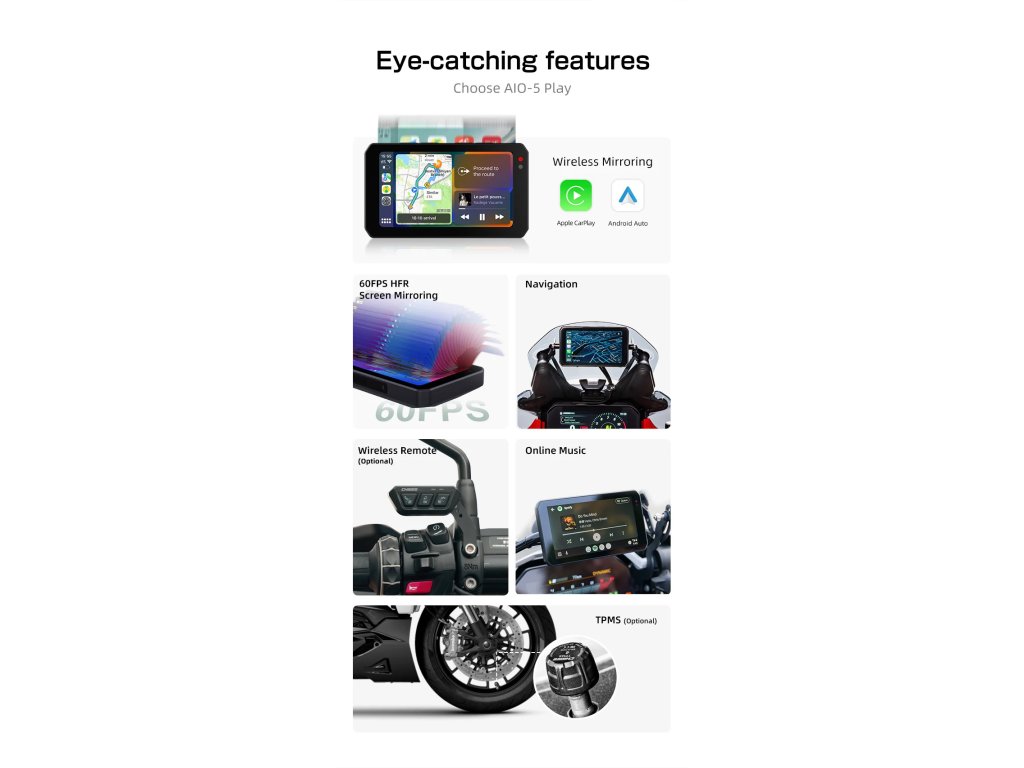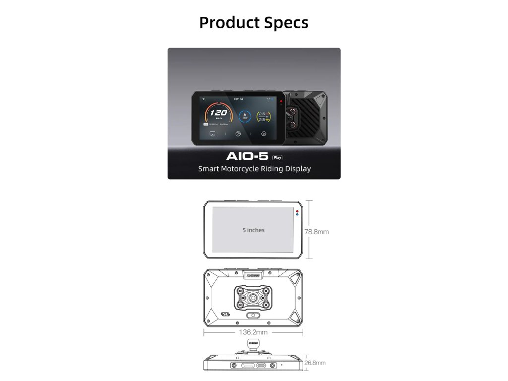 - AIO-5 Play je speciálně navržen pro motocykly.