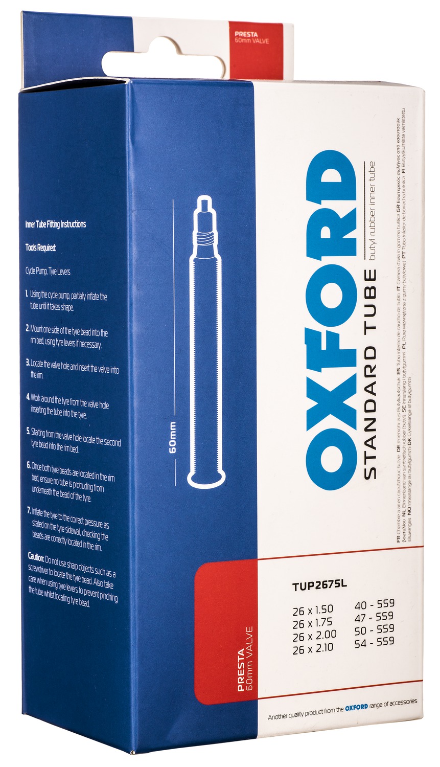 Cyklo duše 26 x 1,5/2,1, galuskový ventilek prodloužený 60 mm, OXFORD