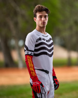 Lehká konstrukce se střihem navrženým metodou body mappingu s vícemateriálovým složením a základem ze streč polyesteru disponuje strečovými vložkami pro zajištění volnosti pohybu jezdce.