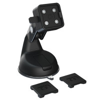 Držák s přísavkou může být umístěn na rovné, neporézní povrchy. Integrované ramínko umožňuje rotaci v rozsahu 360° a díky tomu co nejlepší možnost donastavení pozice Vašeho příslušesntví.