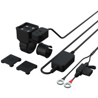 Sada adaptéru se zástrčkou pro USB port s možností umístění zařízení na řídítka a zapojení k napájení nebo napřímo k baterii motocyklu/čtyřkolky.