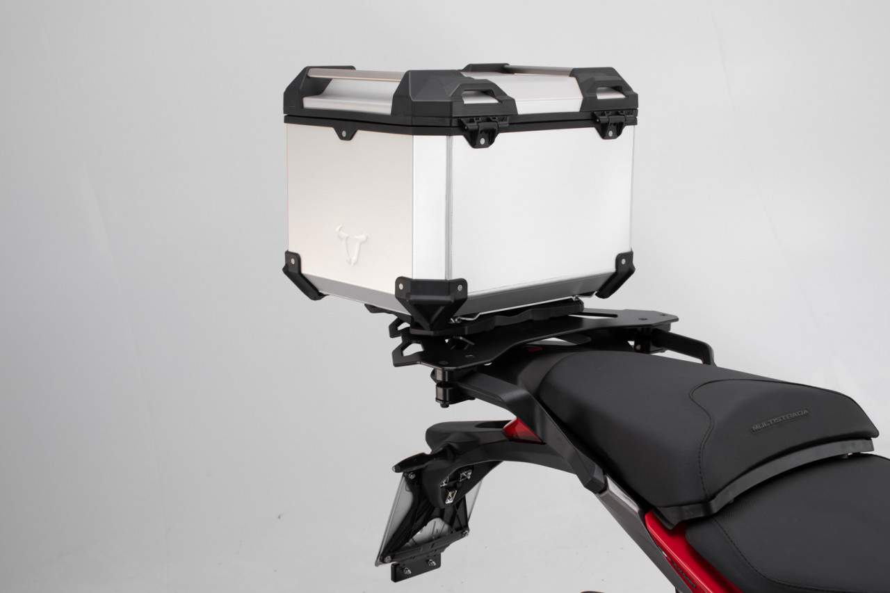 Ducati Multistrada 950 (16-) - Sada horního nosiče s kufrem TRAX Adventure, SW-Motech Stříbrný kufr