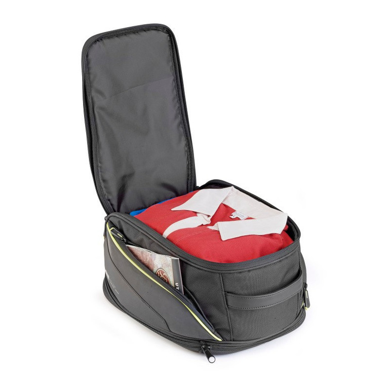 Magnetický tankruksak, rozšiřitelný (20-26 l.), max. objem 26 litrů, rozměry šxvxh = 390x280x220 mm, vybaven slídou na mapu, popruhem přes rameno a žlutě reflexní pláštěnkou. Systém TANKLOCK pro rychlé uchycení na nádrž - kroužek BF... kupte dle modelu motocyklu. Dva popruhy pro nošení jako batoh, dvě boční kapsy. Řada výrobků EASY = označení EA. Design od roku 2021, reflexní prvky.