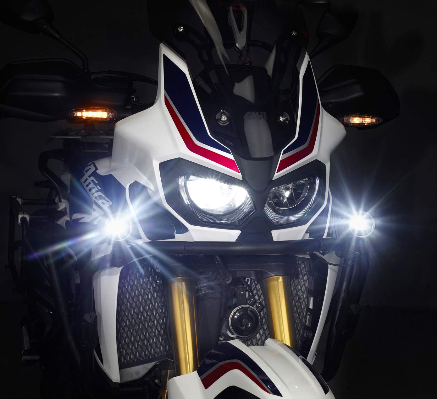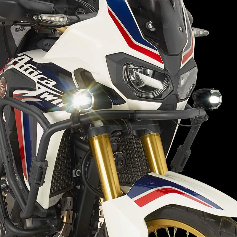 Sada dvou prídavných LED svetlometu, každý o výkonu 8W (16W celkem), urcená k montáži na padací rámy. Hliníkové telo svetlometu. Dodáváno vcetne objímek k uchycení na trubku kruhového prurezu o prumeru 21 až 25 mm a kabeláže a vypínace na rídítka. Nutno propojit s baterií motocyklu - nezasahujte do stávají elektroinstalace motocyklu. Homologováno.