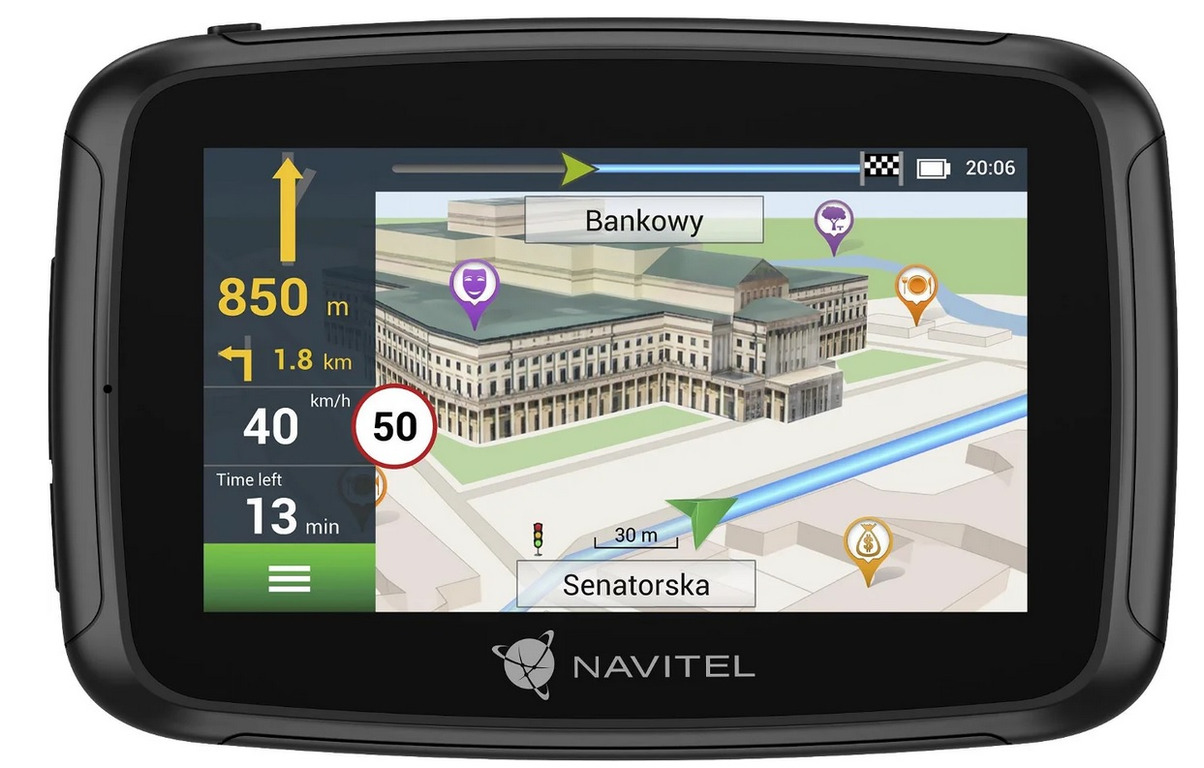 GPS navigace NAVITEL využívá moderní technologie k lepšímu plánování svých tras. S voděodolnou konstrukcí můžete navigaci využívat i v deštivém počasí bez obav z poškození. Vizualizace budov ve 3D formátu může přispět ke zlepšení vizuálního vnímání a orientace uživatelů. Na přehledném displeji máte možnost sledovat celkový čas a ujetou vzdálenost.
