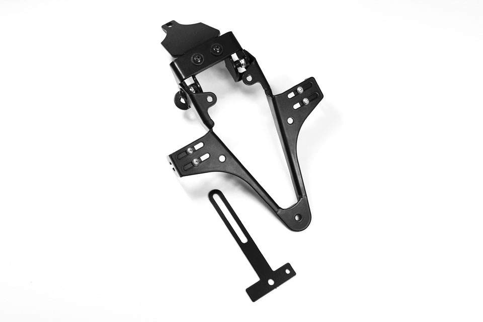 Vysoce kvalitní ocelový držák SPZ.Držák je pro vysokou životnost a pro vyšší odolnost lakovaný černou práškovou barvou.Díky plynule nastavitelnému úhlu náklonu lze držák nastavit do idální pozice. Není potřeba žádná úprava kapotáží.