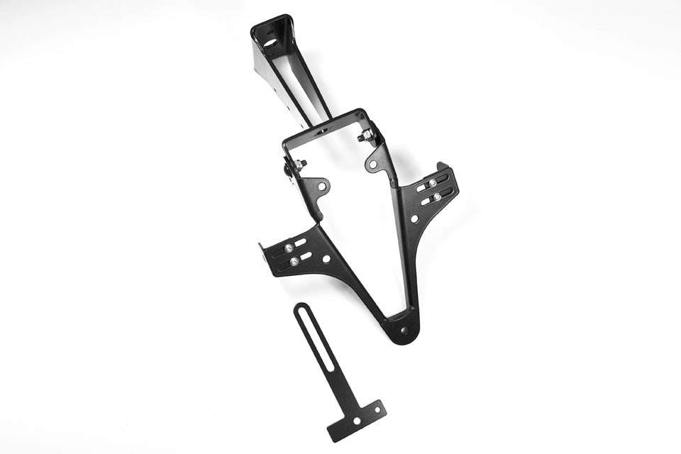 Vysoce kvalitní ocelový držák SPZ.Držák je pro vysokou životnost a pro vyšší odolnost lakovaný černou práškovou barvou.Díky plynule nastavitelnému úhlu náklonu lze držák nastavit do idální pozice. Není potřeba žádná úprava kapotáží.