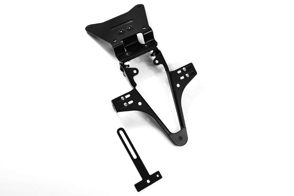 Vysoce kvalitní ocelový držák SPZ.Držák je pro vysokou životnost a pro vyšší odolnost lakovaný černou práškovou barvou.Díky plynule nastavitelnému úhlu náklonu lze držák nastavit do idální pozice. Není potřeba žádná úprava kapotáží.