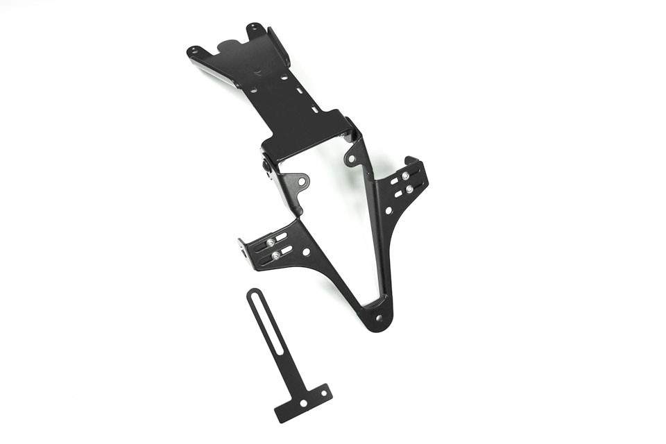 Vysoce kvalitní ocelový držák SPZ.Držák je pro vysokou životnost a pro vyšší odolnost lakovaný černou práškovou barvou.Díky plynule nastavitelnému úhlu náklonu lze držák nastavit do idální pozice. Není potřeba žádná úprava kapotáží.